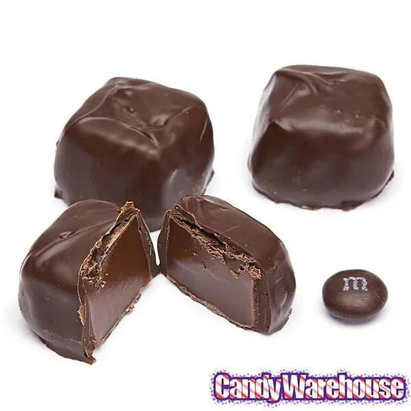Box contains 6 pounds of Dark Chocolate Covered Chocolate Caramels Candy… that’s about 180 pieces.