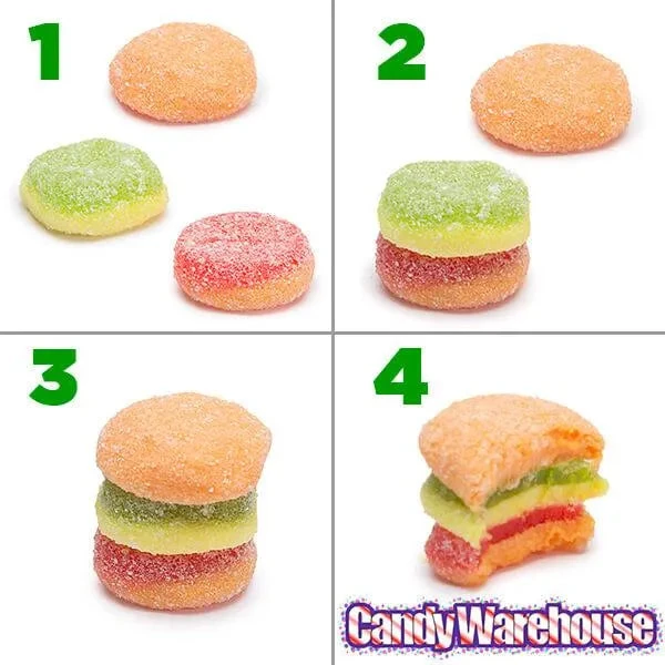 Pucker up and munch down these juicy gummi hamburgers!