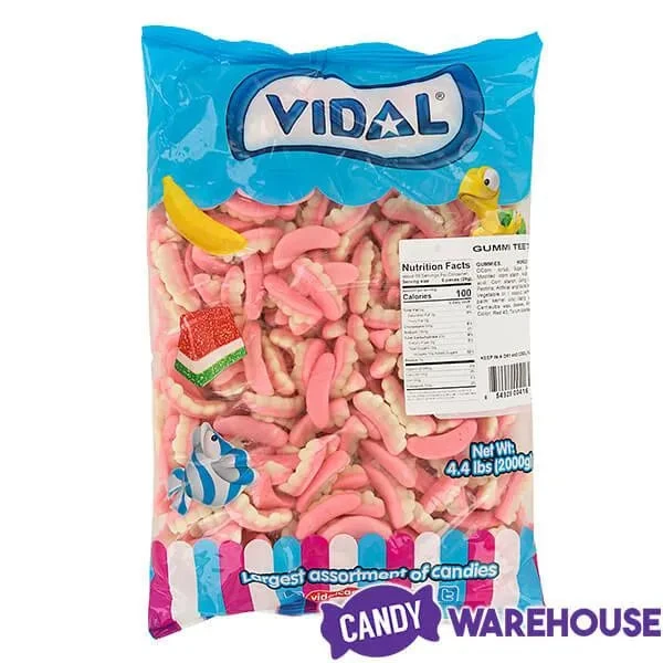Bag contains 2 kilograms (about 4.4 pounds) of Gummy Teeth Candy.