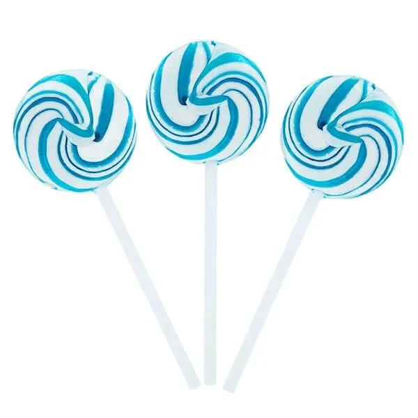 Jar contains 24 individually wrapped Squiggly Pops Petite Blue & White Swirl Lollipops.