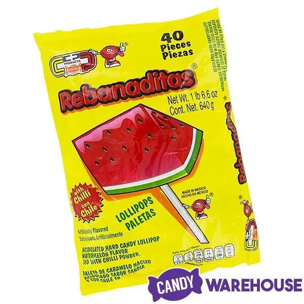 Bag contains 40 Vero Rebanaditas Lollipops.