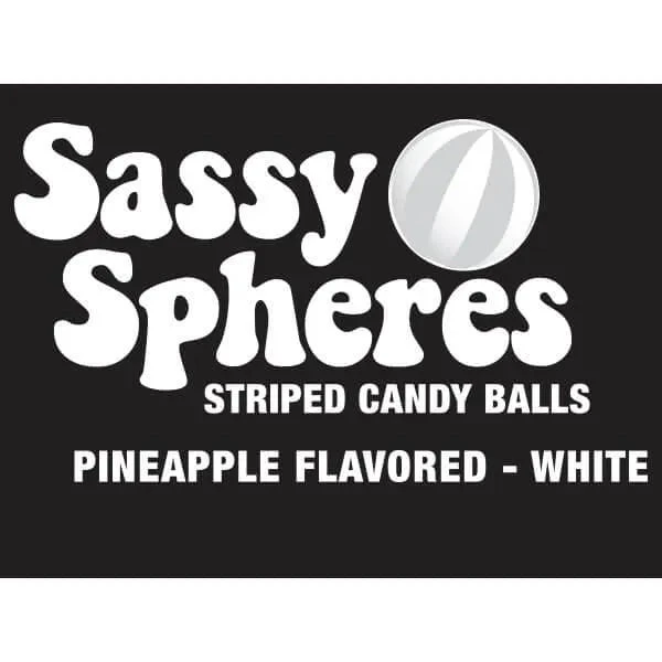 Bag contains 100 individually wrapped Pineapple Sassy Suckers White Striped Ball Lollipops.